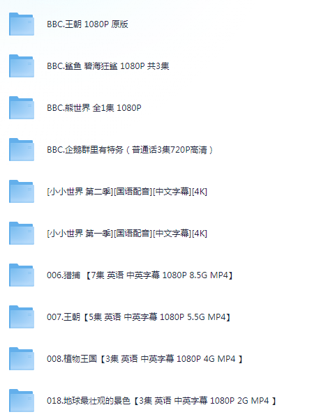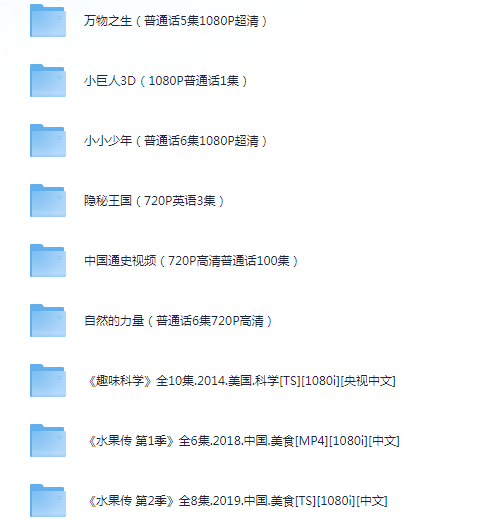 之前是一个央视推荐137部儿童纪录片的大合集。里面太多的重复,花了点时间删掉重复的资源。